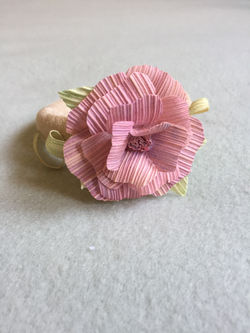 Corn husk roses on gross grade ribbon